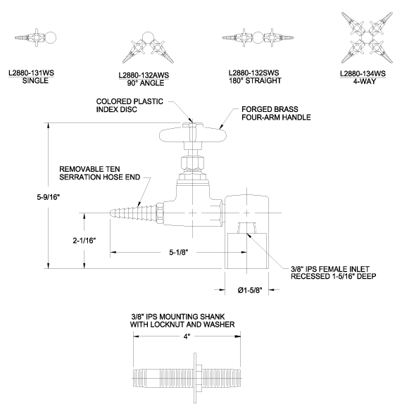 Deck mounted turret base single straight pattern water laboratory needle valve with mounting shank.