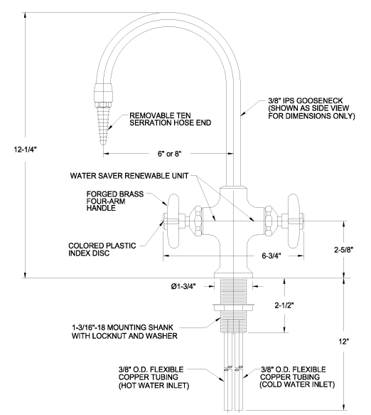 Water Faucet – L411 Single faucet with 6″ rigid gooseneck
