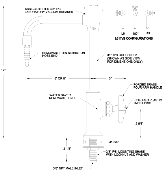 Vandal-resistant single Faucet with 6″ rigid gooseneck, deck mounted and vacuum break.